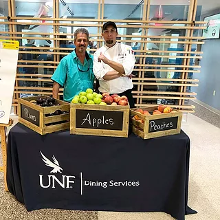 UNF Dining Services works closely with the on-campus Frederick and Ophelia Tate’s Ogier Gardens to offer the UNF community fresh, locally grown fruits, herbs, and vegetables. You can see some of the seasonal produce available at the Osprey Café salad bar, the kitchen, and some of their other rocking stations. UNF Dining Services also partners with Food Fighters: Student-Powered Hunger Relief to eliminate food waste on campus. Compost initiatives are being utilized by various dining locations and even in the nutrition lab located in the Brooks College of Health.